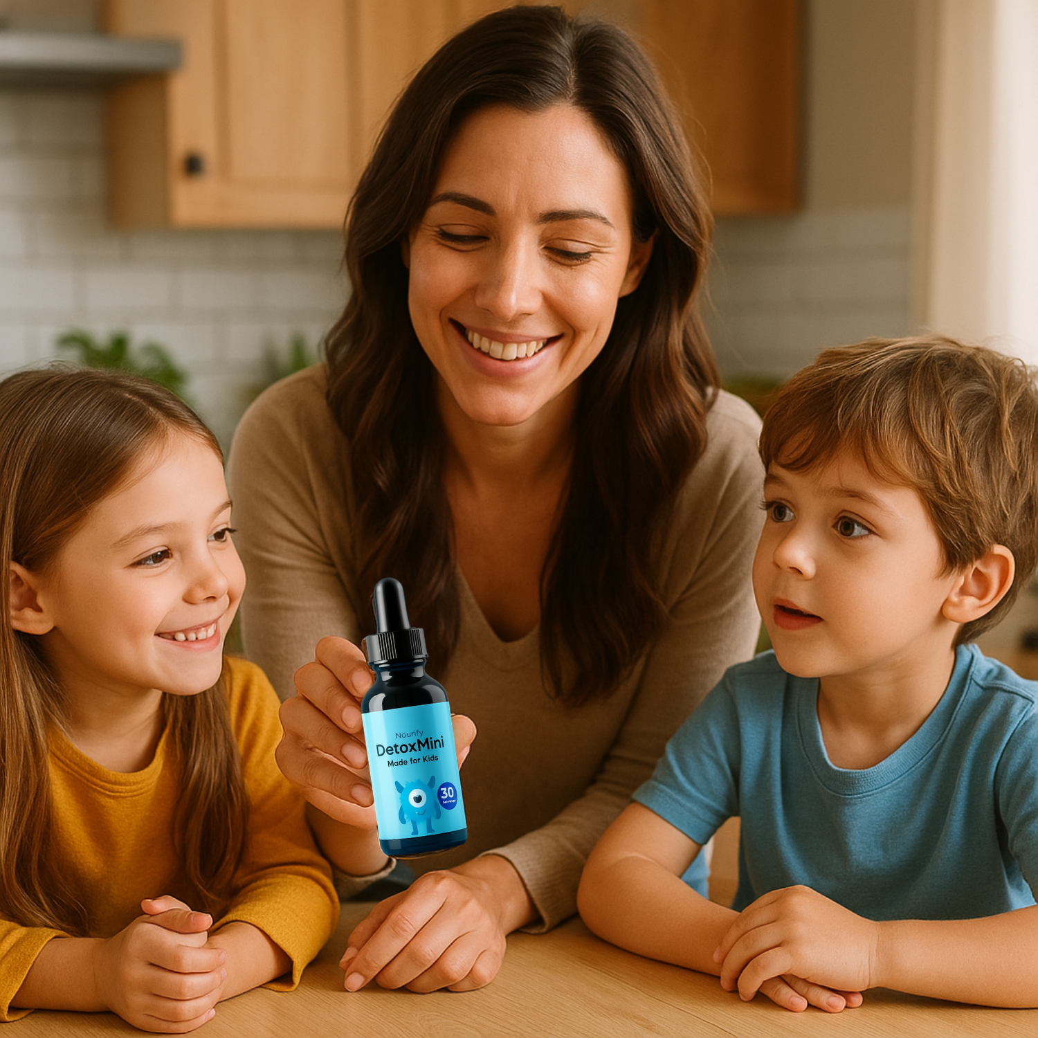 Seguro para el uso diario, Nourify DetoxMini es ideal para niños y adolescentes que necesitan un comienzo limpio y equilibrado desde adentro.