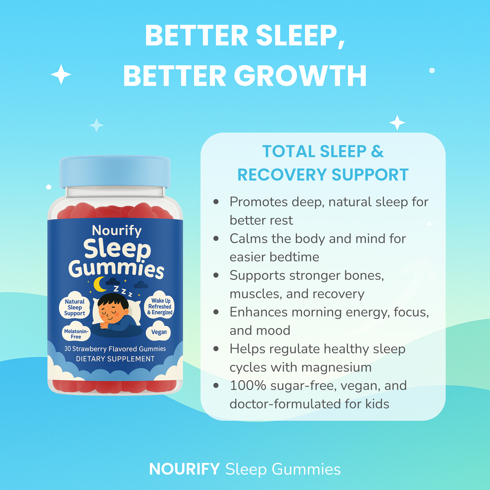The Nourify – Growth Kit is suitable for children aged 5 and up, teens, and even adults still within their natural growth phase. It’s ideal for kids experiencing growth spurts, teens needing extra support for bone and muscle development, and anyone wanting to improve sleep and overall wellness.