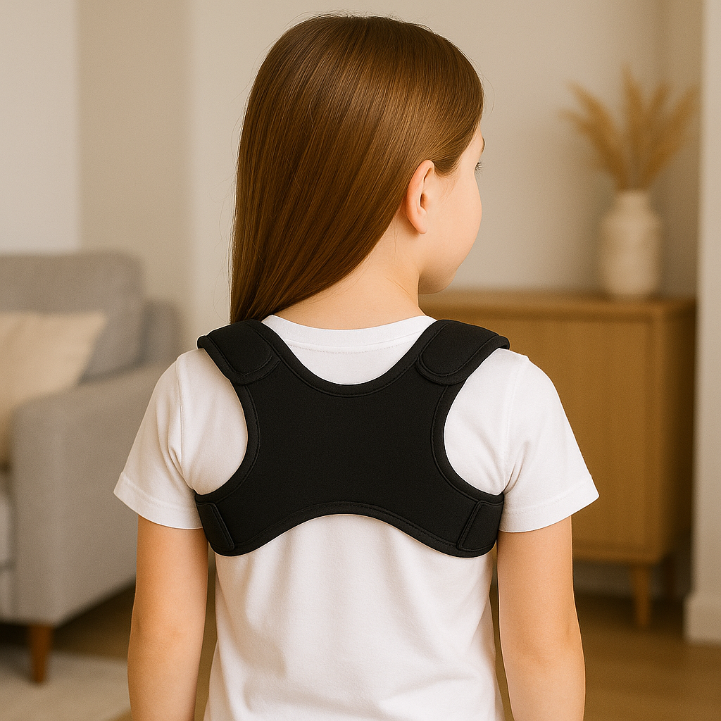 Al guiar la columna vertebral hacia una curva saludable y alinear los hombros, el corrector de postura enseña a los niños a sentarse y pararse más erguidos. Esto reduce la tensión en la espalda y los hombros, mejora la comodidad durante las actividades diarias y fomenta la confianza, ayudándolos a verse y sentirse más altos.