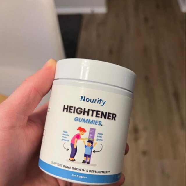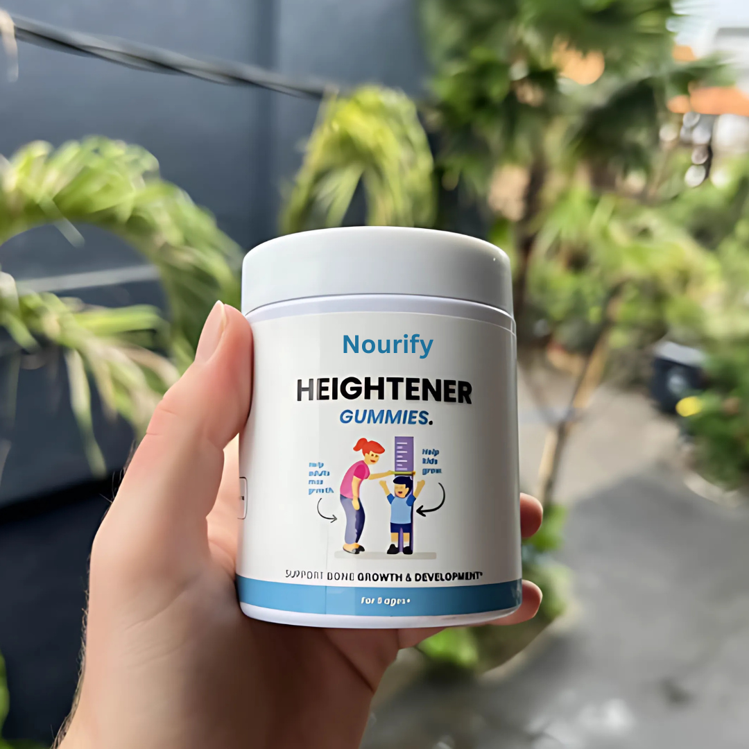 Las gomitas Nourify Heightener son un suplemento dietético formulado por médicos, diseñado para favorecer el crecimiento natural en altura, la fortaleza ósea, la postura y el bienestar general. Contienen una potente mezcla de vitaminas, minerales y aminoácidos, como calcio, vitamina D3, zinc, magnesio y L-arginina, para ayudar a que tu hijo o adolescente alcance su máximo potencial de crecimiento.